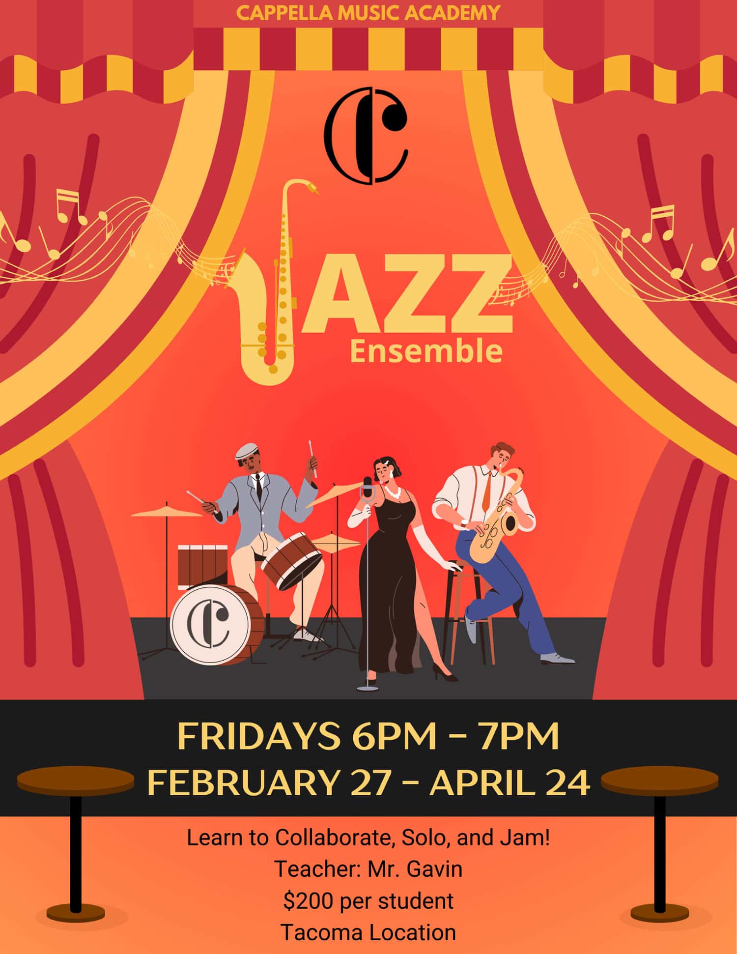 Join Mr. Gavin in this 8-week course, where he will introduce everyone to the joys of jazz, and teach students how to play in a typical jazz combo.