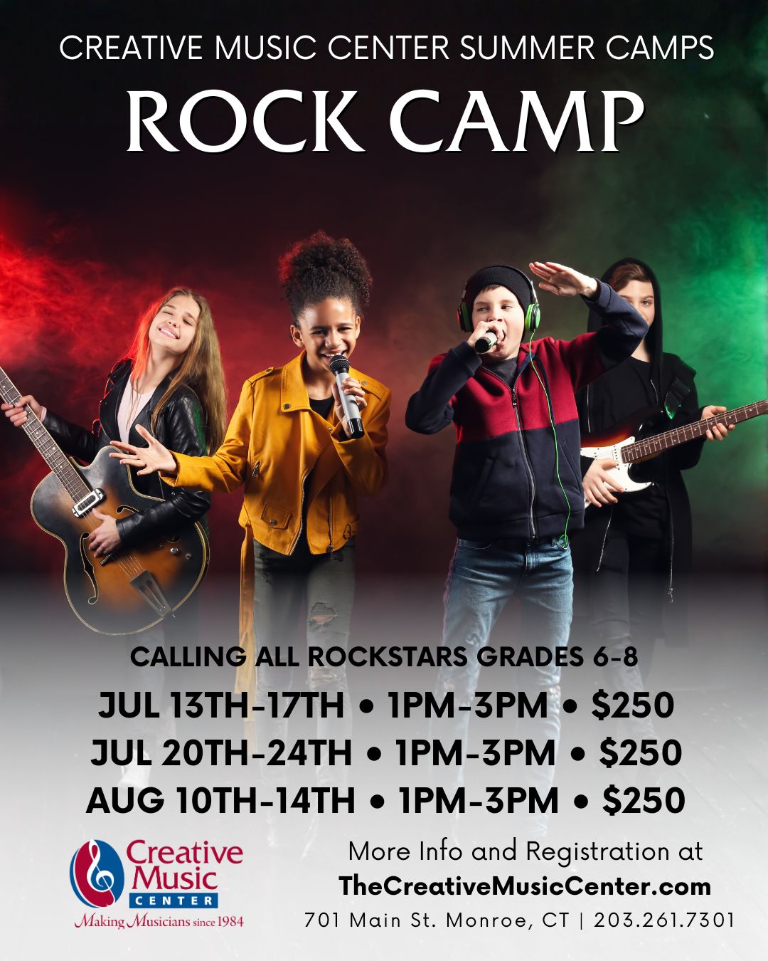 Rock Camp – Jul 13-17, Jul 20-24, Aug 10-14th